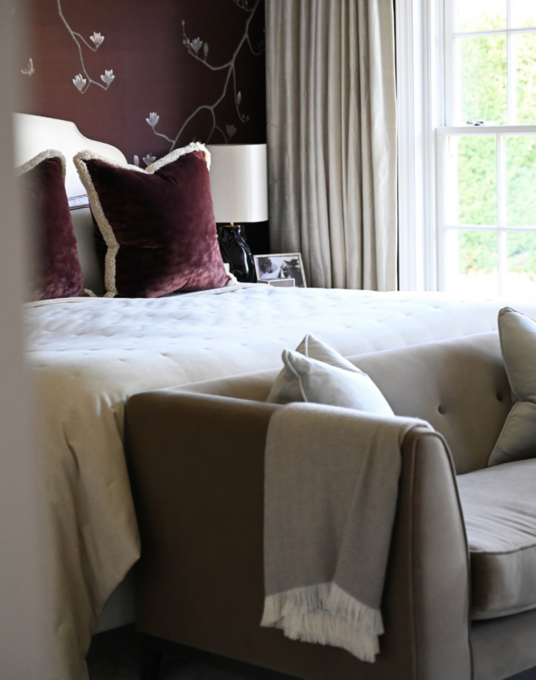 With Sophie Paterson’s Surrey home now set to come to market, there is a rare chance not only to buy a designer’s own house, but to see one of the clearest expressions of her style. Already familiar from her home tours on social media, the house brings together many of the elements that define her work: Georgian influence, oak joinery, silk wallcoverings and a polished, refined style that also feels deeply livable, with tactile layers and comfortable, elegant furniture throughout.