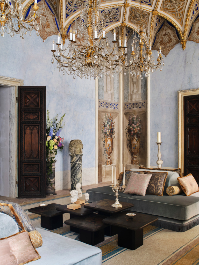 Its real power lies in the palazzo itself. The building still carries the drama of its past, from Gothic and Baroque flourishes to the remarkable octagonal staircase that has already become its defining image. The restoration was led by Aline Asmar d’Amman, who spent eight years bringing the palazzo back to life, preserving its sense of history while introducing interiors rich in marble, Murano glass, velvet and decorative detail.