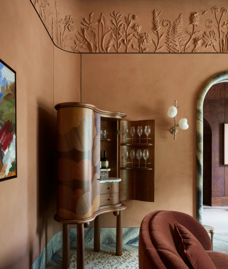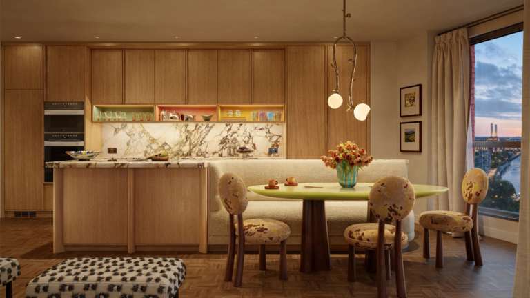 The design, envisioned by Ballymore’s in-house team in collaboration with leading interior architects, draws inspiration from Art Deco influences combined with a modern sensibility. Soft curves, warm metallics and sculptural lighting define a palette that balances glamour and restraint. Residents enjoy the amenities that have made Embassy Gardens iconic, including the transparent Sky Pool suspended between towers, along with new wellness and concierge spaces that elevate everyday life into an experience of crafted serenity.
